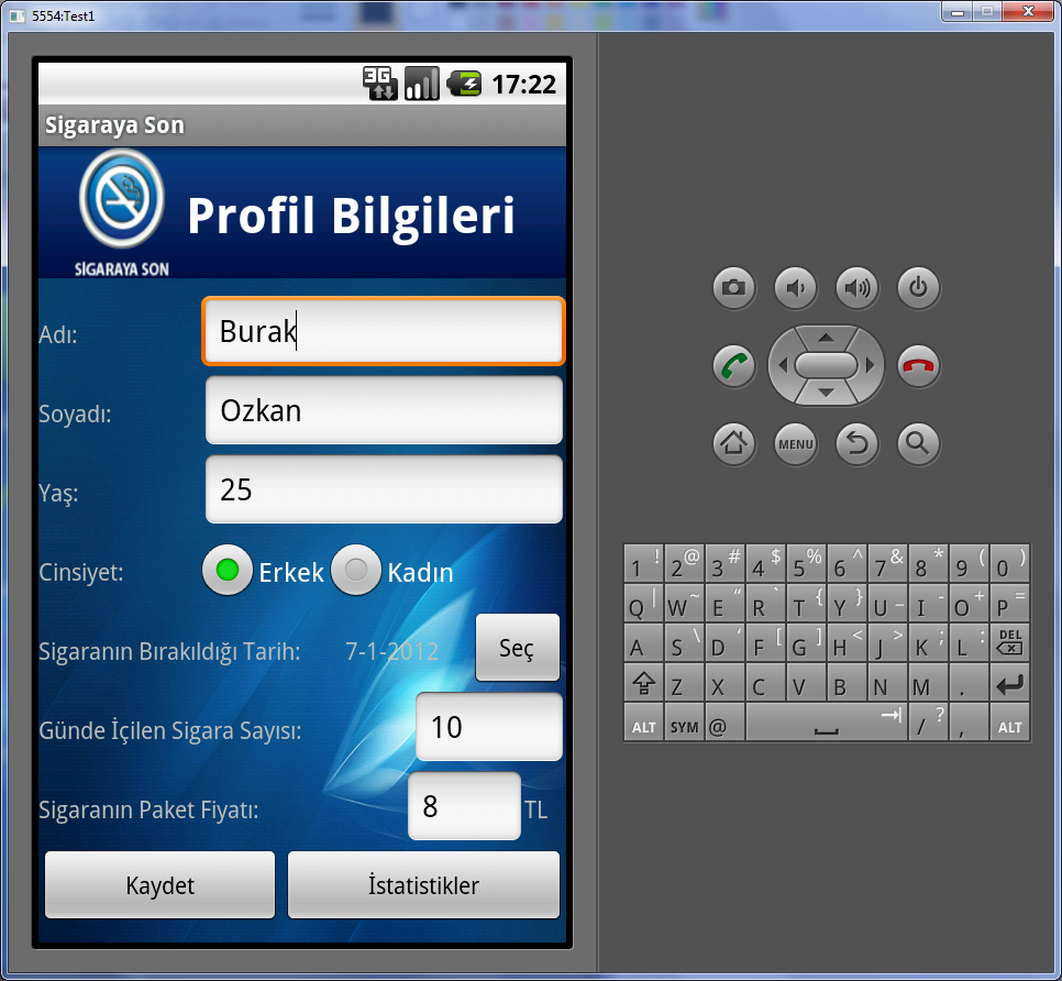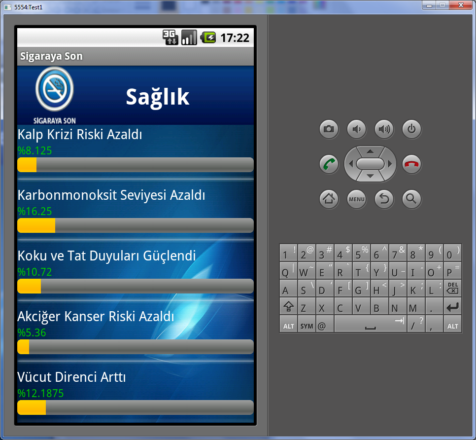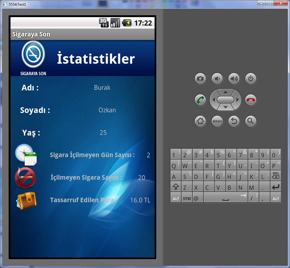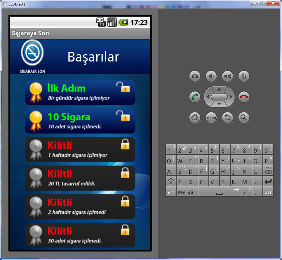 Android SDK ile gerçekleştirilen uygulama, kullanıcının sigarayı bıraktırmaya teşvik etmektedir.